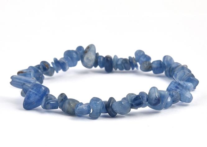 A kianit 0,5-1 cm-es gömbölyített szemcséiből készítettünk, gumis karkötő. A karkötő színe nem egységesen kék, hanem előfordul benne szürkés rész is, mert a kianit drága alapanyagnak számít, így a legkisebb rész is felhasználják, még a más ásványokat is tartalmazó szemcséket is. A karkötő hossza 18,5-19, cm közötti. Az ásványok nem helyettesítik az orvosi dia