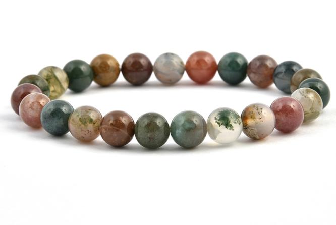 Az indiai achát, éppen olyan színes, mint maga India. De nem önálló ásvány, hanem a világosabb, vegyes színű mohachátból, karneolból és kalcedonból áll. A karkötőhöz a 8 mm-es indiai achát ásvány golyóit használtuk és gyöngyfűző gumira fűztük fel duplasorosan, hogy tartósabb legyen. A karkötő méretének meghatározása : a csuklód méretéhez adj hozzá 1,5 cm-t