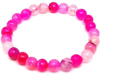 Achát karkötő (golyó szinezett hőkezelt fazettált pink Kína Karkötő ásvány)Az ásvány golyók gumira vannak felfűzve. Az ásványok színbeli aránya eltérhet a képen láthatótól. Amit az achátról érdemes tudnod: Az achát minden színben fellelhető, többnyire szürke, kékesszürke, zöldesszürke, szürkésfehér, barna csíkozással, áttetsző. Lelki gyógyhatás: Az ach