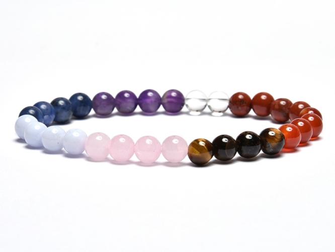 A csakra karkötőt 6 mm-es ásvány golyókból fűztem, a kezdetét és a végét hegyikristály választja el, amely fokozza a többi ásvány hatását. A karkötő az alábbi ásványokat tartalmazza : jáspis, karneol, tigrisszem, rózsakvarc, kalcedon, szodalit és az ametiszt. A hossza kb. 18 cm. A csakra szanszkrit szó, jelentése: „kerék. Ez a megnevezés a tisztánlátóktól ered,