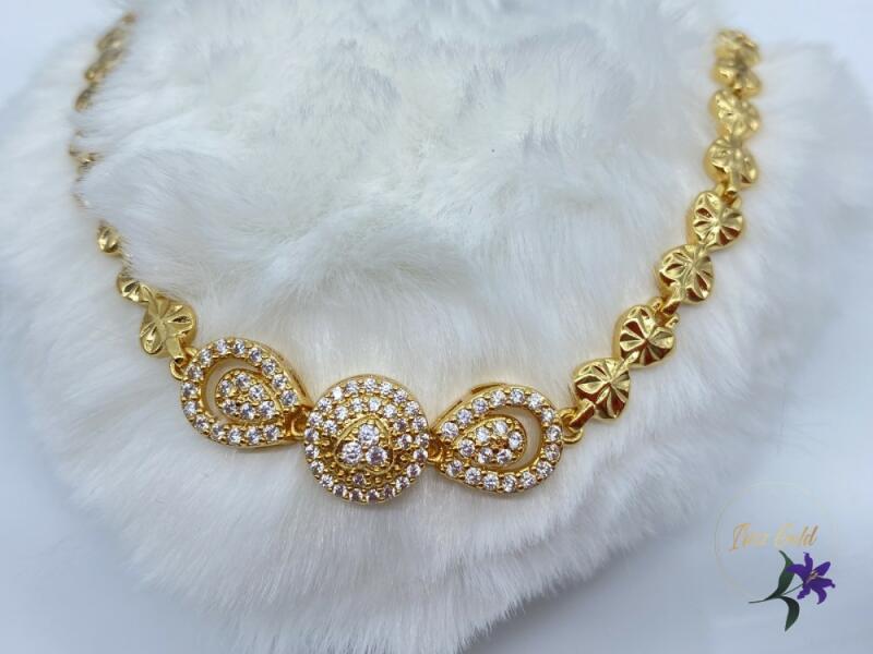 Gyönyörű metszett és tűcirkónia kővel diszitett karkötő Szin: 18Kr Méret: 18 cm /10mm A forgalmazott divatékszerek alapanyaga nikkel és ólommentes ezért többnyire nem okoznak allergiás tüneteket, nyugodtan hordhatják fémérzékeny emberek is. Általában nem színezik a bőrt és más divatékszerekhez képest nagyságrendekkel jobb kopásállósággal rendelkeznek. A fehér (ez