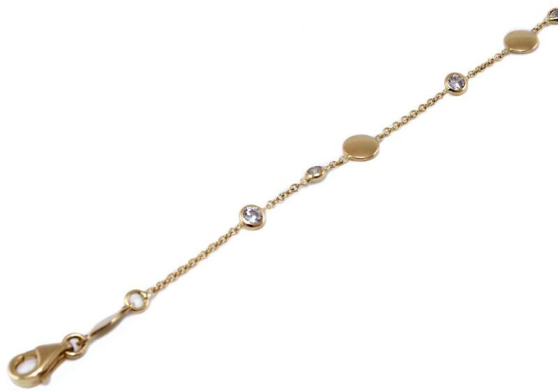 Különleges és kedvelt fazonú, vékony anker típusú arany karkötő, köves és kör alakú fényes betétekkel kombinálva.