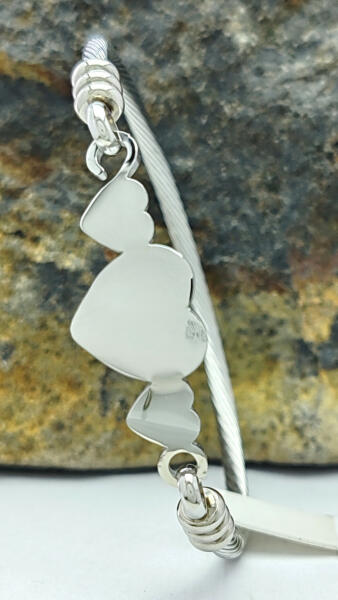 Ezsütszínű nemesacél (316L) sodrony polírozott, fényes karperec, melyet három szív minta díszít. A karperec kinyitható a könnyebb felhelyezés érdekében. Tartós, minőségi antiallergén ékszer, nem feketedik, viselhető folyamatosan. Karperec szélessége: 3 mm. Szív minta mérete: 13 mm x 30 mm. Karperec belső átmérője: 62 mm. A nemesacél ékszerek rendkívül népszerűek