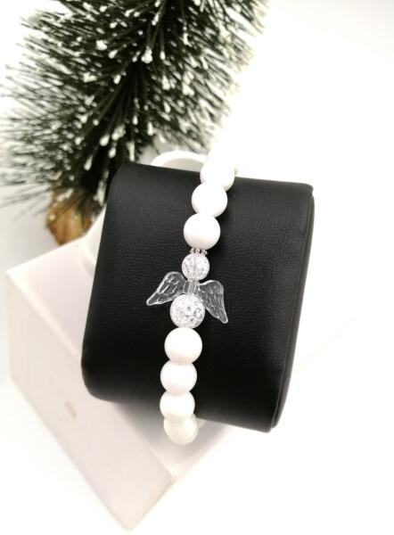 Hófehér angyal ásványkarkötő hófehér tejkvarc ásványokból.