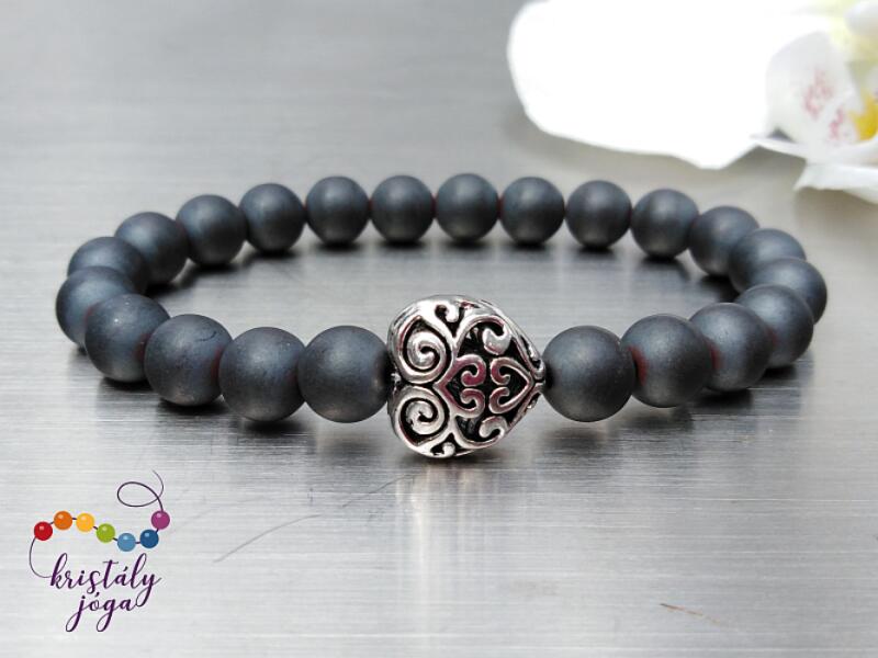 8 mm-es hematit ásvány gyöngyökből speciális gumira fűzött karkötő. Amit a hematitról érdemes tudnod: Ez a metálosan csillogó szürkés-barnás kő más néven "vérkőként" is ismertté vált. Ez az elnevezés nem csak testi gyógyhatásai miatt illik rá, hanem mert csiszolásuk során az ember ujját vérpiros színűvé festi. A hematit egy erős energiakő, segítségével a t