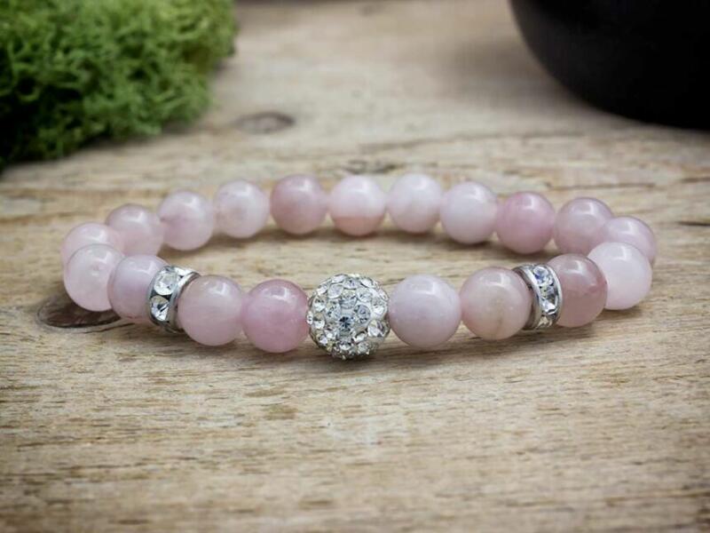 8 mm-es rózsakvarc ásvány golyókból fűzött gumis karkötő. Az ékszer dísze két kristályokkal kirakott gyűrű és egy kristálygömb, melytől ünnepies külsőt kap a karkötő. Hordható elegáns eseményeken és akár hétköznapokon is. Amit a rózsakvarcról érdemes tudnod: A festetlen rózsakvarc az egész világos, szinte áttetszőtől, a ködös középrózsaszínig terjed. A