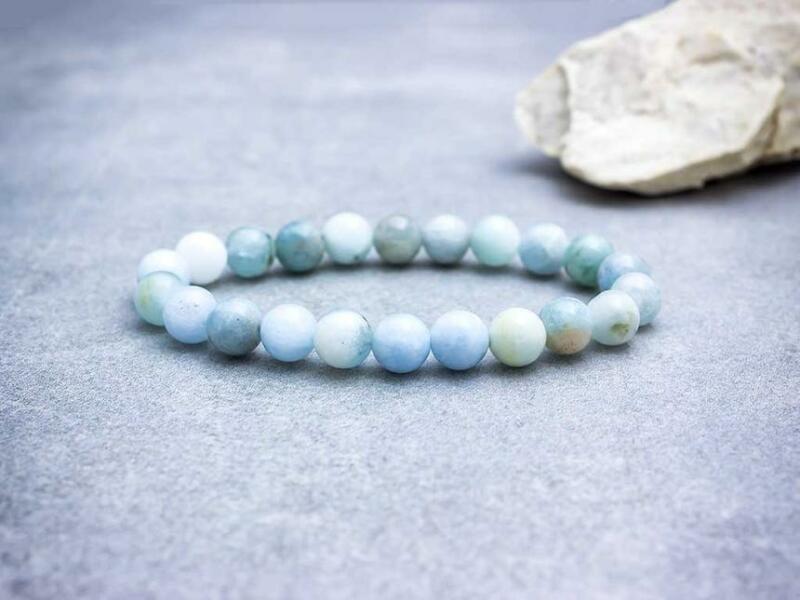 Akvamarin kőből fűzött gumis ásványgyöngy karkötő. Amit az akvamarinról érdemes tudnod: Az akvamarin egy szinte világítóan csillogó kő, melynek a neve az olasz "tengervíz" szóból származik, megtestesítendő a tenger nagyszerűségét. A kő a berill család talán legnemesebb tagja, a zöld emerald "nővére". Színe a világoskéktől a zöldeskékig terjed, a legszebb, legdr