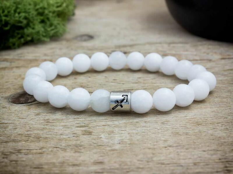 Ezt a karkötőt kifejezetten a nyilas jegy (11.23. - 12.21. ) szülötteinek terveztük, készítettük. A karkötő tejkvarc 8mm-es ásvány gyöngyökből és egy fém köztes elemből áll. Az ásvány golyók gumira vannak felfűzve, így kényelmes a hordása. Nyilas (11.23. - 12.21. ) horoszkóp jellemzése: E jegy szülöttje igazságos, becsületes, őszinte, megértő, és emberszerető.