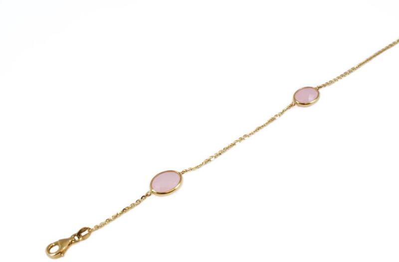 Különleges, három ovális rózsakvarc kővel ékített, sárga arany anker típusú karkötő.