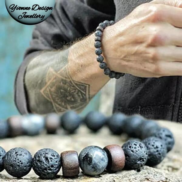 Ez egy gyönyörű egyedi tervezésű, 8 mm átmérőjű gyöngyökből készült, lávakő karkötő.