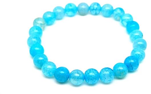 Achát karkötő (golyó hőkezelt szinezett kék világos Kína Karkötő ásvAz ásvány golyók gumira vannak felfűzve. Az ásványok színbeli aránya eltérhet a képen láthatótól. Amit az achátról érdemes tudnod: Az achát minden színben fellelhető, többnyire szürke, kékesszürke, zöldesszürke, szürkésfehér, barna csíkozással, áttetsző. Lelki gyógyhatás: Az achát lelk