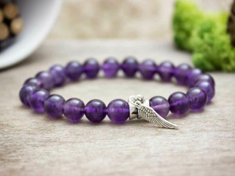 Az ametiszt golyók gumira vannak felfűzve. Amit az ametisztről érdemes tudnod: Az ametiszt a kvarccsoport legkedveltebb köve, az achát ásvány belső felszínén növekszik. Míg a kristály maga jó néhány centiméterre nő meg, az azt tartalmazó geóda akár több méter hosszú is lehet. Ennek a fenséges kőnek a színe a mély lilától a halvány levenduláig terjedhet a benne lév
