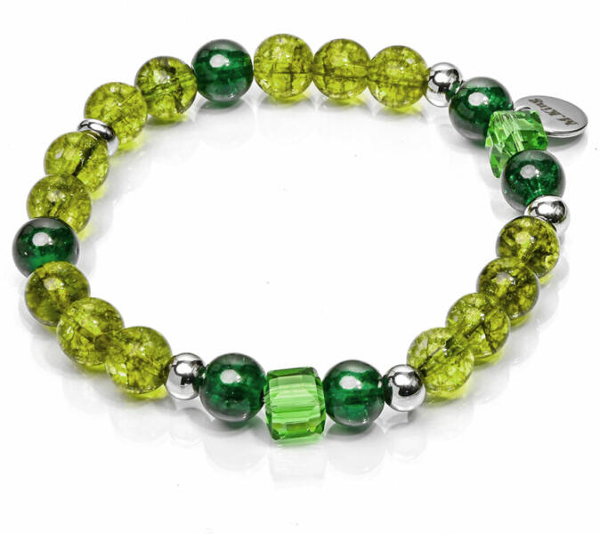 Az erdei zöld és sötétzöld tökéletes párosítása, kis kristályos fénnyel találkozik ebben az exkluzív peridot és hegyikristály karkötőben. A természet vadsága és szelídsége egyszerre jelenik meg a szemünk előtt, a hívogató kaland és a veszély kihívása. A Maria King kollekció kiemelt darabja. Figyelem! A képen exkluzív kivitelű, rugalmas karkötő látható kapocs