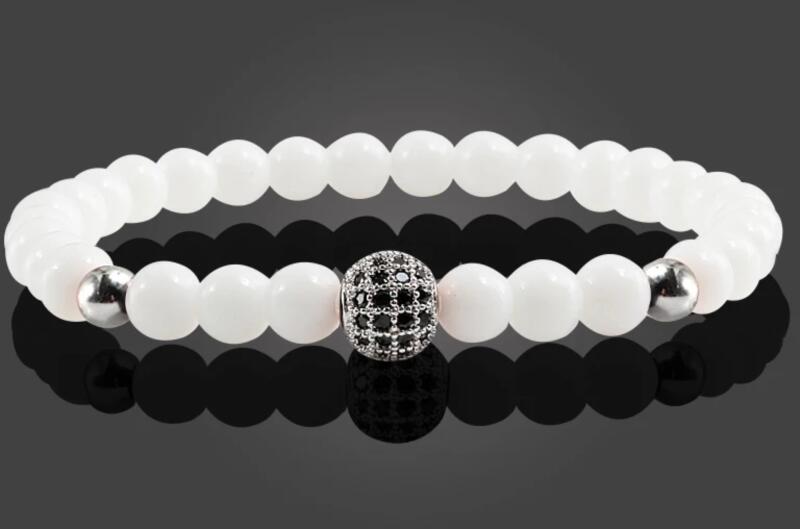 Gyönyörű egyedi LUXURY hófehér tejkvarc ásványkarkötő mikrokristálygömb díszítéssel. Ehhez a karkötőhöz ajándék díszdobozt adunk.