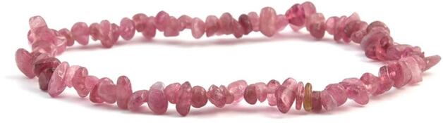 A vörös turmilin 0,5-1 cm-es szemcséit kisebb mértékben legömbölyítették, ezekből készült gumis karkötő. A karkötő hossza kb. 18,5-19 cm. A vörös vagy rózsaszín turmalin másik neve rubellit. Az ásványok nem helyettesítik az orvosi diagnózist és kezelést. A vörös turmalin hatása : a vörös turmalin hatásos kimerültség esetén, mert erősíti a véredényeket és a