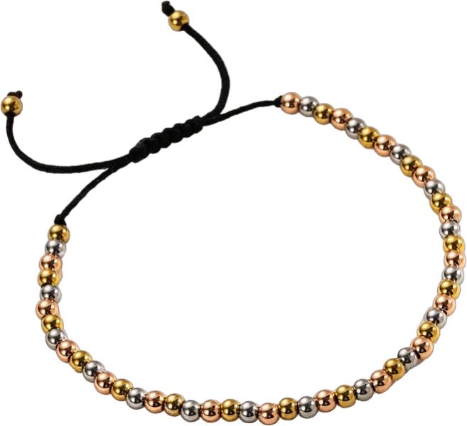 Carola Karkötő Különleges, divatos Carola karkötő verhetetlen áron. Az ékszer nem tartalmaz nikkelt, ezért érzékeny bőrű emberek is viselhetik. Tulajdonságok: A karkötő mérete: Húzással állítható A gyöngyöcskék mérete: 0,3cm Anyaga: Nemesacél, Pamut zsinór Szín: Arany/RózsaArany/Ezüst