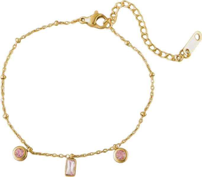 Grazyna karkötő Ez a karkötő rózsaszín cirkónia ékkövekkel díszített. Az elegancia és nőiesség megtestesítője. A vékony láncon három gyönyörű medál található, amelyek finom rózsaszín árnyalatban pompáznak és színes akcentust adnak a karkötőnek. A beállítható hossz biztosítja a kényelmes és rugalmas viseletet, míg a kiváló minőségű kidolgozás hosszú é