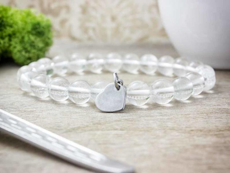 Ásvány golyókból fűzött gumis karkötő. Szív medál mérete: 1 x 1 cm. Amit a hegyikristályról érdemes tudnod: A kristály szavunkat igen sokféle vonatkozásban használjuk, pl. kristálygyerek, kristálytiszta, kristálygömb, de egy biztosan közös ezekben a szavakban, hogy bármiféle szövegkörnyezetben is fordul elő, biztosan üdítő természetesség és tisztaság jut eszünk
