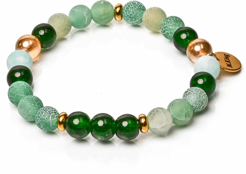 Mokait jáspis ásványgolyókból fűzött gumis karkötő. Amit a mokait jáspisról érdemes tudnod: Gyakori előfordulása és a földszínek széles skálája miatt a jáspist ősidők óta használják dísztárgyak és pecsétek készítésére. Mágikus ereje miatt is nagyra értékelték. Úgy hitték, hogy túlvilági szellemi cselszövések ellen véd és a szerelmi bánatot mérsékli.