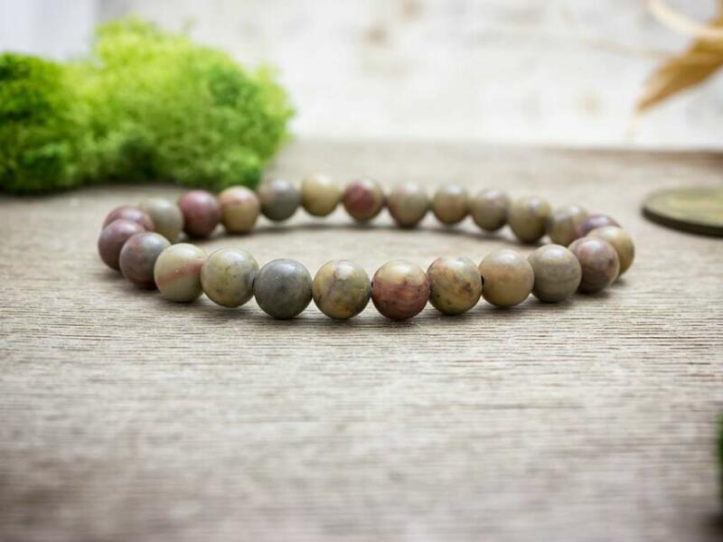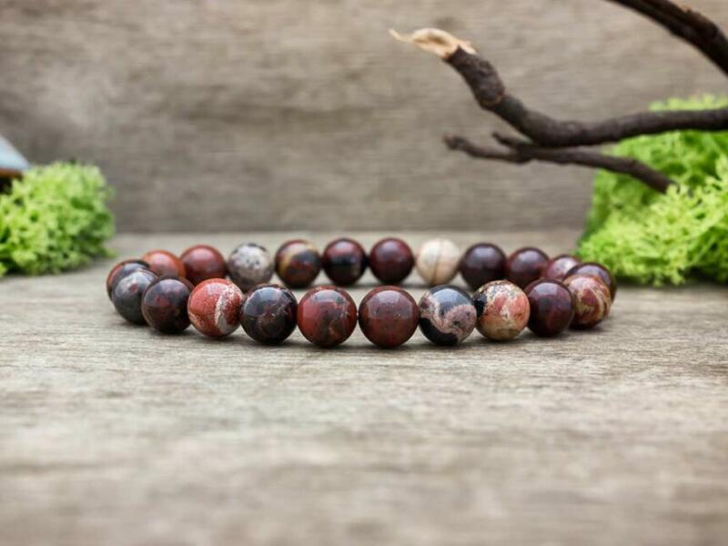 Breccsa jáspis ásványgolyókból fűzött gumis karkötő. Amit a breccsa jáspisról érdemes tudnod: A breccsa jáspis változatos mintázatát és színét a kőzettörmelékek átkristályosodásából nyerte. Ennek köszönhetően a breccsa jáspis a lehetőségek tarka egyvelegét kínálja mindenkinek. Lelki gyógyhatás: Harmonizáló és összekapcsoló minőséget tulajdonítanak neki