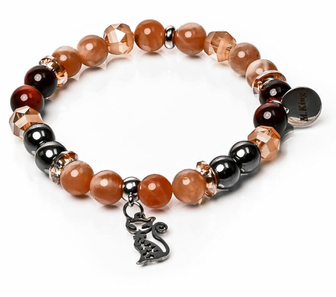 Figyelem! A képen exkluzív kivitelű, rugalmas karkötő látható kapocs nélkül, de kérheted extra erős acélsodronyra is delfinkapoccsal és 5 cm hosszabbítólánccal. Ha a kapcsos verziót kéred, ami nem szakad, nem nyúlik, válaszd ki a listából, vagy írd be a Megjegyzésbe, és a csuklód körbemért méretét is add meg. A karkötőt alapesetben a képen is látható charmmal kü