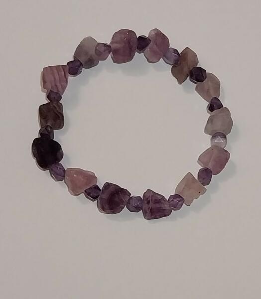 Nyers fluorit-Ametiszt női karkötő A természetesség jegyében. A szemek mérete: 8-10 mm-es nyers fluorit gyöngyök 6mm-es csiszolt ametiszttel kombinálva. A Fluorit ásvány nagyon hasznos védelmező ásványkő. Magabiztosságot kölcsönöz tulajdonosának. Tanulást segítő ásvány, rendszerezi az eddig megtanultakat, és növeli a figyelem összpontosítását. A fluorit megszüntet
