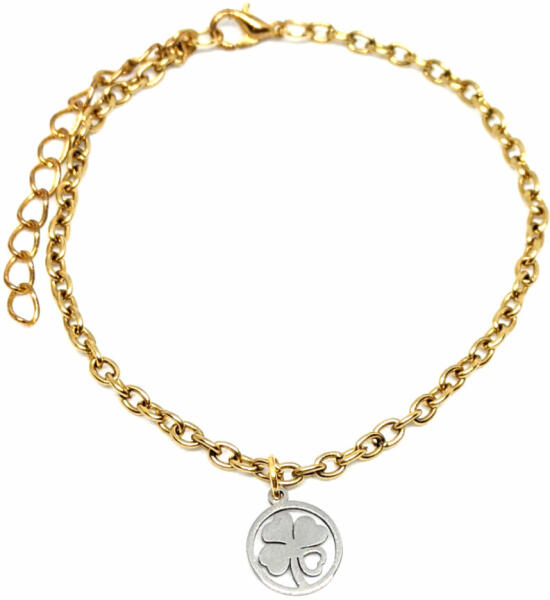 Nemesac l négylevelű lóhere charmos karkötő. Paramé terek: Charm mérete kb. 1,1 cm. Anyaga nemesacél. Karkötő mérete 17+5 cm. (Ha ettől eltérő méretet szeretnél, rendeléskor a MEGJEGYZÉSBE írd be. )