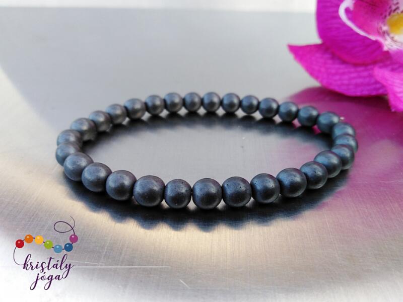 8 mm-es hematit ásvány gyöngyökből speciális gumira fűzött karkötő. Amit a hematitról érdemes tudnod: Ez a metálosan csillogó szürkés-barnás kő más néven "vérkőként" is ismertté vált. Ez az elnevezés nem csak testi gyógyhatásai miatt illik rá, hanem mert csiszolásuk során az ember ujját vérpiros színűvé festi. A hematit egy erős energiakő, segítségével a t
