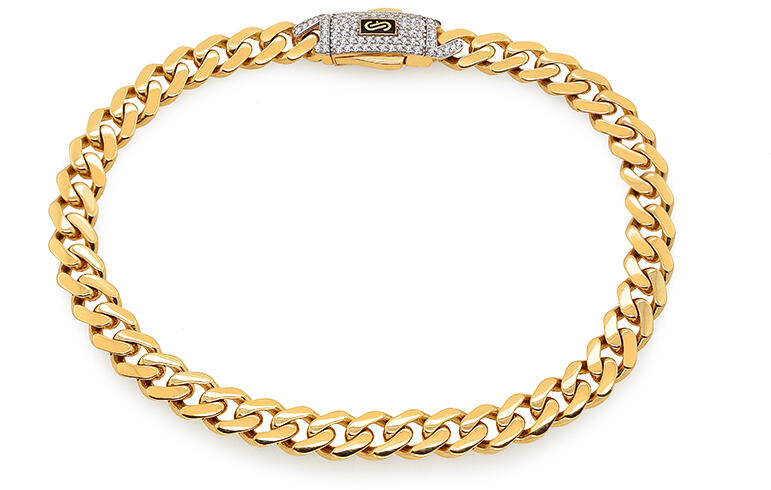 Klasszikus, kedvelt fazonú "Scharless" típusú, sárga arany karlánc.