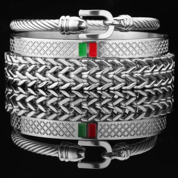 Devante Karkötők Ez a karkötőszett három darab karkötőt tartalmaz, mindegyik különleges dizájnnal - fonott, láncos és finom mintával - melyeket együtt is viselhet a kifinomult összhatásért vagy külön-külön az egyszerű, de mégis stílusos hatásért. Kiváló minőségű nemesacélból készült, ezek a karkötők nem csak masszívak és ellenállóak, hanem mutatósak és st