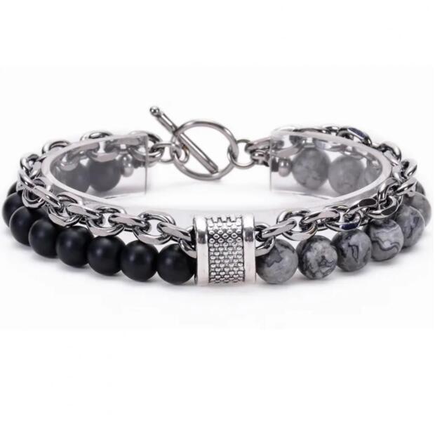 Marcus karkötő A Marcus karkötő természetes kövek és fém elemek stílusos kombinációja, amely modern és kifinomult dizájnt teremtenek. A középső domináló fém rész indusztriális jelleget ad a karkötőnek, így megkülönbözteti azt a hagyományos ékszerektől. Ez a karkötő azok számára ideális, akik olyan kiegészítőt keresnek, amely alkalmas mindennapi viseletre, de k