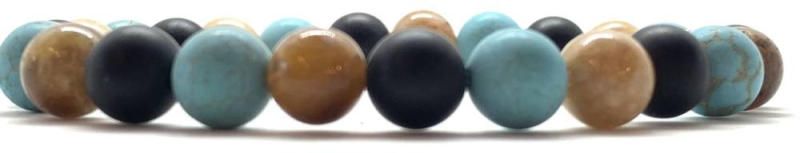 Egyedi, antiallergén ásvány karkötő A 8mm-es Achát, Türkiz és Ónix ásvány golyókból készült karkötő speciális gumis damilra van fűzveAmit az Ónixról tudni kell: Az ónix általában fekete, néha előfordulhat fehér, szürkés csíkozódással is. Az Ónix testi és lelki hatásai: Az ónix egy védelmező kő, amely a negatív energiák ellen véd. Csökkenti a befolyásolha