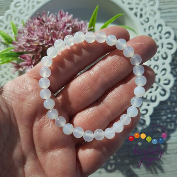 A fehér achát megtanít hogyan szeressük és tiszteljük magunkat. Földel, megnyugtat, segít a túlzott izgatottság vagy pánikroham leküzdésében. Támogatja a békességet, remek meditáló kő mert a koronacsakra működését harmonizálja, elősegíti a spirituális fejlődést. Erősíti az anya és a gyermeke közötti kapcsolatot már a fogantatás pillanatától, majd a születés