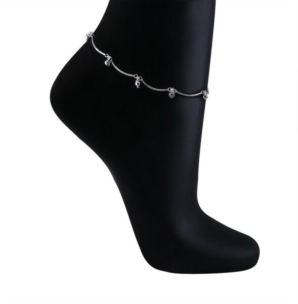 A 925 ezüst bokaláncot vékony, kissé ívelt téglalapok alkotják, amelyeket kicsi kerek láncszemek kapcsolnak egymáshoz. A szemeket felváltva fényes tele golyók és sima foglalatba helyezett cirkóniák díszítik. A lánc végei kerek lapos szemekből állnak. Bok alánc állítható hosszúsággal és delfinkapoccsal. A lánc szélessége: 0,9 mmA téglalap alakú vonal szélessége: 1