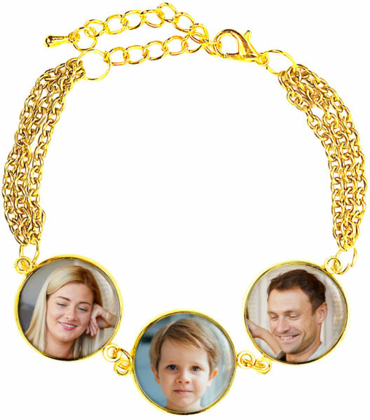 Ez az egyedi dizájn csak nálunk kapható. A három fénykép helyére bármilyen fotót vagy grafikát küldhetsz, így szeretteid, családtagjaid vagy kedvenc háziállataid bármikor veled lehetnek a fényképes karkötődön. Ajándéknak is nagyon jó ötlet egy szép megmunkálású saját fényképes ékszer. Ez a három fényképes karkötő kiváló ajándékötlet, de saját magadat is