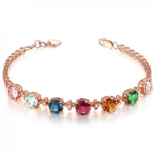 Karen Multi Szépséges, divatos Karen karkötő verhetetlen áron. Az ékszer nem tartalmaz sem nikkelt, sem ólmot, sem kadmiumot, ezért érzékeny bőrű emberek is viselhetik. Színes cirkónia ékkövekkel díszített. Tulajdonságok: A karkötő hossza: 19cm Anyaga: Nemesacél Szín: RózsaArany/Multi