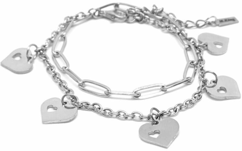 Nemesac l áttört szív charmos dupla karkötő, 5 charmmal. Paramé terek: Charm mérete kb. 1,1 cm. Anyaga nemesacél, karkötő anyaga rozsdamentes acél. Karkötő mérete 17+5 cm. (Ha ettől eltérő méretet szeretnél, rendeléskor a MEGJEGYZÉSBE írd be. ) Szélesség 4 és 3 mm. Csajos, divatos, mégis vagány karkötő, nem túl sok, nem túl kevés, feltűnő, de nem hivalkodó.