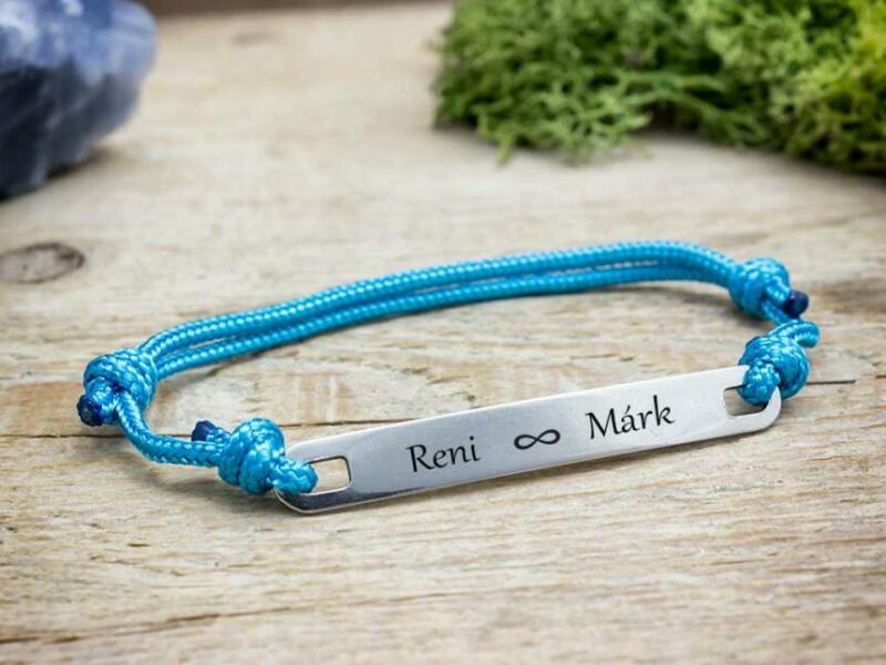 Ezt az egyszerű, de mégis egyedi karkötő ajándék ötlet ünket e gy microcord zsinór és egy acél medál alk ot ja . A karkötőt egy lap alakú 49×6,3 mm-es méretű elegáns acél medál díszíti, amit gravírozunk , így személyesebbé téve az ajándékot . Egyedileg gravírozott ékszer esetén h ogyan zajli k a rendelés? Nagyon egyszerű! A kiválasztott termék adatlapján tudod