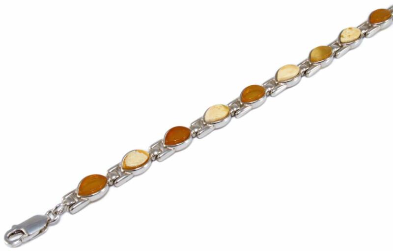 Különleges és mutatós, csónak alakú borostyán kövekkel ékített ezüst karkötő.