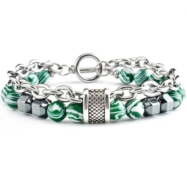 Gabor karkötő Mutatós karkötő színes gyöngyökkel és robusztus fém láncokkal, amely tökéletes kiegészítő azok számára, akik szeretik az egyedi és modern stílust. A fém részletek eleganciát adnak a karkötőnek, míg robusztus felépítése hosszú élettartamot és kényelmes viseletet garantál. Ez a karkötő ideális mindennapi viseletre és különleges alkalmakra, amikor