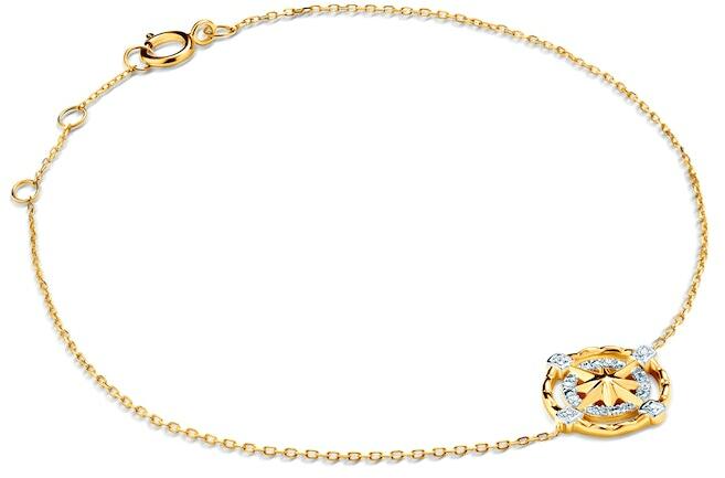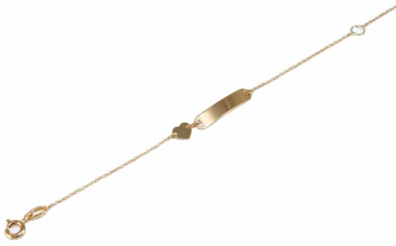 Kedvelt fazonú, könnyű súlyú, fényes lapbetéttel és szív motívummal kombinált vékony anker gyermek arany karkötő.