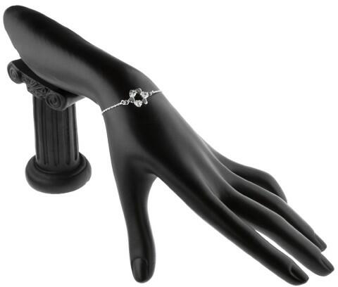 Karkötő 925 ezüstből, ferdén kapcsolt apró szemekből és delfinkapocs zárással. A lánc közepén egy díszítő elem található - sima és cirkóniás szívecskék karikába helyezve. A karika méretei: 14 x 12 mmA lánc szélessége: 1,1 mmA lánc hossza: 165 mmA hosszabító lánc: 250 mmA karkötő súlya: 2,1 gFémjelzéssel ellátott.