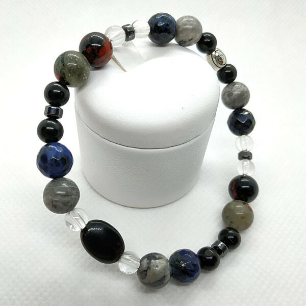 Vitronius a rosszkedv, a melankólia démona - Ő segít Neked levetkőzni a feleslegesen megélt, nem valós rossz kedved, rossz hangulatod. Megmutatja az elakadásaid és feltölt önbizalommal. A karkötőhöz használt féldrágakövek: jáspis, dumortierit, hegyikristály, obszidián, hematit féldrágakövekből készült, rugalmas damilra fűzve.