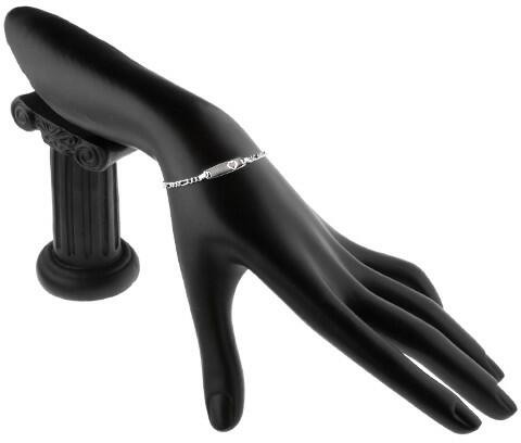 A 925 ezüstből készült karkötőt kétféle láncszemből összeállított ún. Figaro mintás lánc alkotja. A karkötő közepén gravírozott szívecskével díszített tábla van. A tábla mérete: 4,5 x 17 mmA karkötő hossza: 175 mm (+/- 5 %)A karkötő súlya: 2 gFémjelzéssel ellátott.