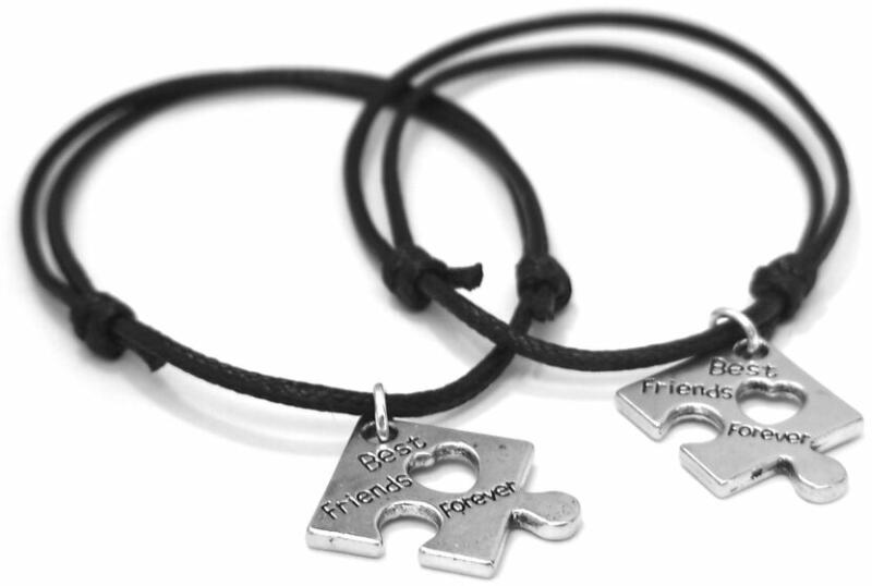 Páros fekete zsinórszövet karkötő legjobb barátok örökké puzzle charmmal, 2 db. Paraméterek:. Charm mérete kb. 2,2 cm. Charm anyaga fémötvözet. Karkötő anyaga textil.