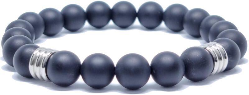 Kiváló minőségű valódi ónix ásványból készült ásvány karkötő. Az ónix karkötő mély fekete árnyalatával és erőteljes megjelenésével stílusos kiegészítő, amely magabiztosságot és stabilitást sugall viselőjének. A karkötő valódi ónix matt 8-9 mm ásványból és nemesacél köztes dísszel készült. Az ásvány, karkötő formában viselve nemcsak stílusos kie