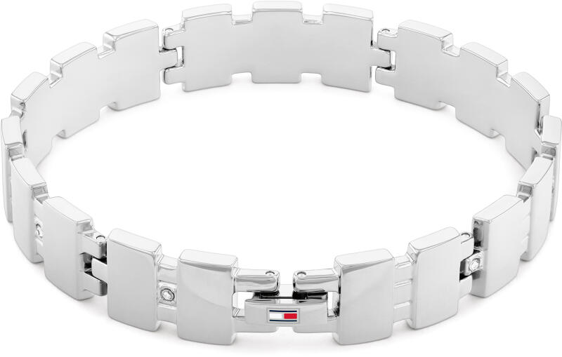 Klasszikus, fényes, polírozott és ródiumal díszített üreges kialakítású scharless férfi karlánc.