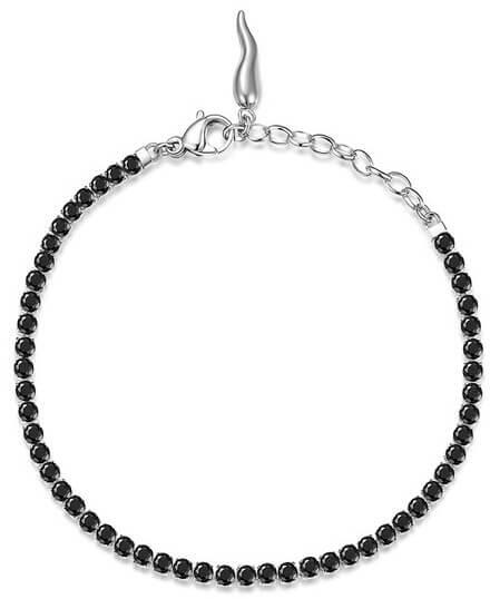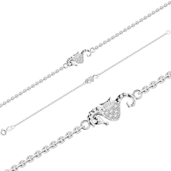 A 925 ezüst karkötő ovális láncszemekből áll, amelyek függőlegesen kapcsolódnak egymáshoz. A dekoratív rész egy csikóhal strukturált hátrésszel és farokkal, csipkézett uszonnyal és részletes fejjel. A csikóhal lekerekített hasát kerek átlátszó cirkóniák díszítik, sima fogak között. A karkötő rugós gyűrűzárral rögzíthető. A karkötő szélessége: 1,8 mmKar