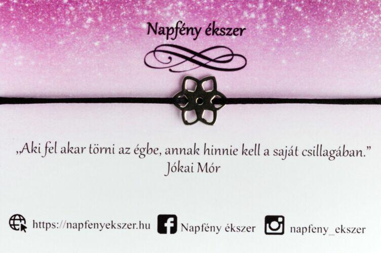 1 darabos zsinór karkötő Fekete kör medálos zsinór karkötő Elegáns, könnyű, letisztult nyári viselet. Egyedi ajándék karkötő mindennapi használatra. A zsinór szakadás állósága igen magas. A kivitelezésnek köszönhetően bármely csukló méreten nagyon kényelmes viselet. A karkötő méretét a csomók mozgatásával tudod a kezedre állítani. A termék egyedi kézzel ké
