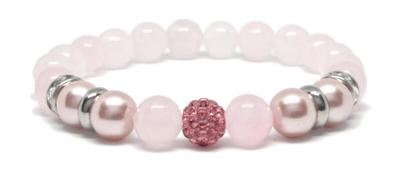 Kiváló minőségű valódi rózsakvarc ásványból készült ásvány karkötő. A rózsakvarc karkötő finom rózsaszín árnyalatával és letisztult formájával, elegáns kiegészítő, amely a gyengédség és a szeretet érzését tükrözi. A karkötő valódi, rózsakvarc, shell peral 8-9 mm ásványból és nemesacél köztes és disco gömb dísszel készült. Az ásvány, karkötő